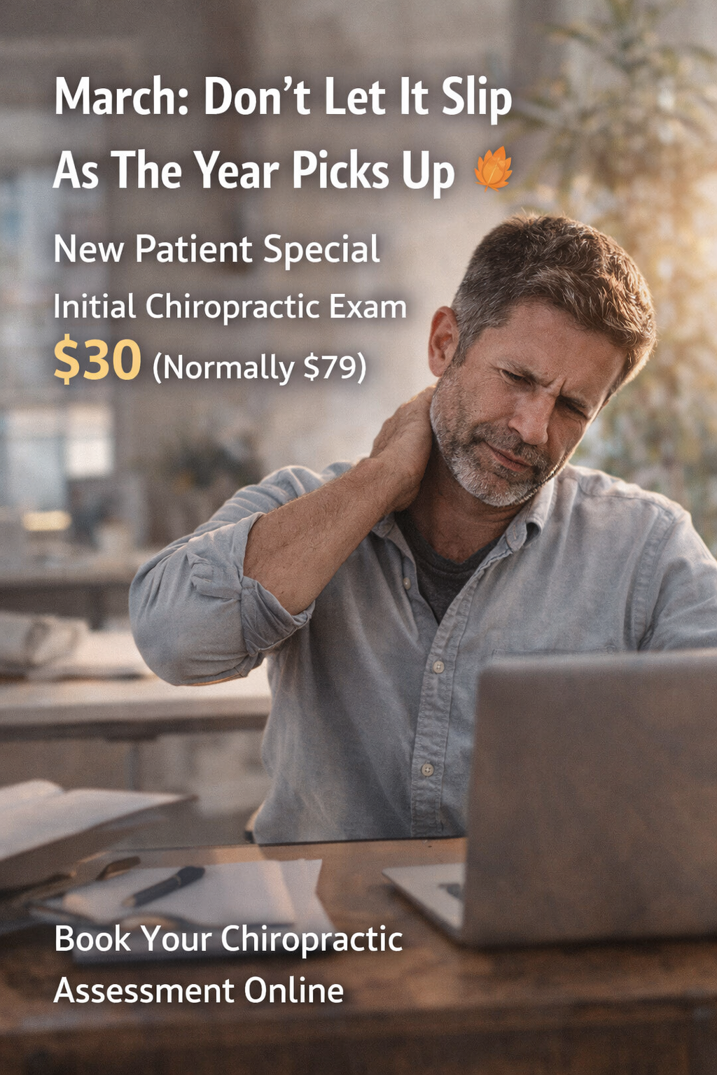 By March, routines are back in full swing — work, school, training, and long hours at a desk. It’s common to notice stiffness, reduced mobility, or general discomfort as the year settles in.
